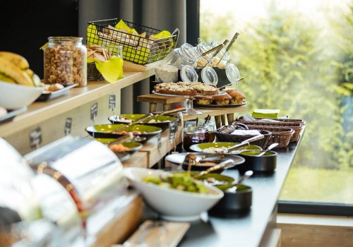 At our hotel, we believe that breakfast should be eaten royally. That is why every day we prepare a real morning meal, during which we serve our best breakfast delicacies from the hotel restaurant. We prepare rich breakfasts made of fresh and carefully selected products. You will find, among others, scrambled eggs with additions, omelettes or fried eggs and a warm and cold buffet. For guests who love sweets, we recommend home-baked cookies and muffins Guests departing at the dawn recieve breakfast sets to go with some strong coffee.